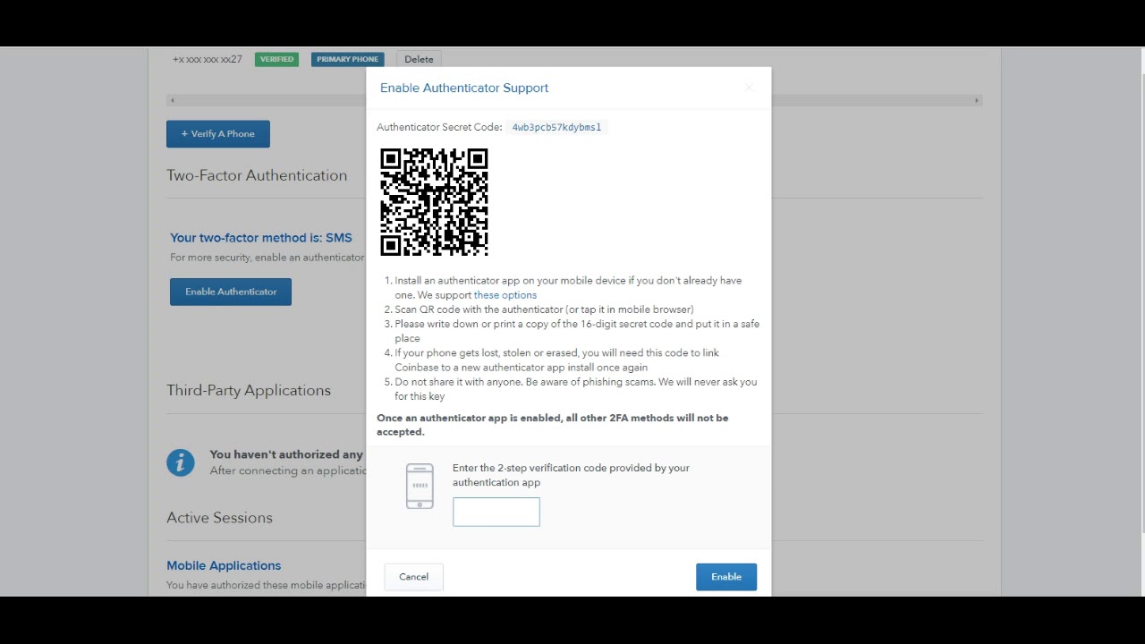 Coinbase shows you a qr code which is a representation of the secret key which you then scan using an authenticator app on your mobile device. If you are facing the same problem then you can use this simple solution to get it started again. Works perfectly on my android. Which type of 2 step verification should i use.